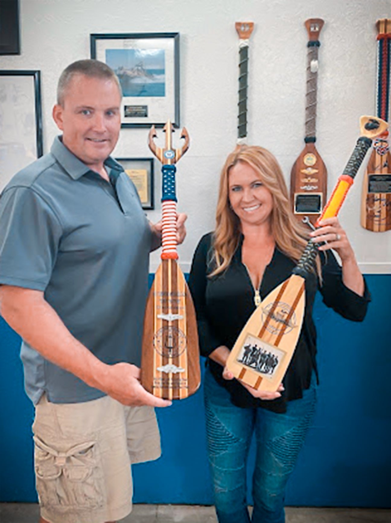 After retiring in 2012, Kyle and his wife Melinda founded NavyPaddles.com. What began as a simple handmade paddle has grown into a symbol of service and teamwork across the military, fire, and police communities. Navy Paddles creates custom wooden memorabilia that honor achievements and commemorate milestones—a true Craft of Honor that keeps Kyle connected to the brotherhood he served alongside.