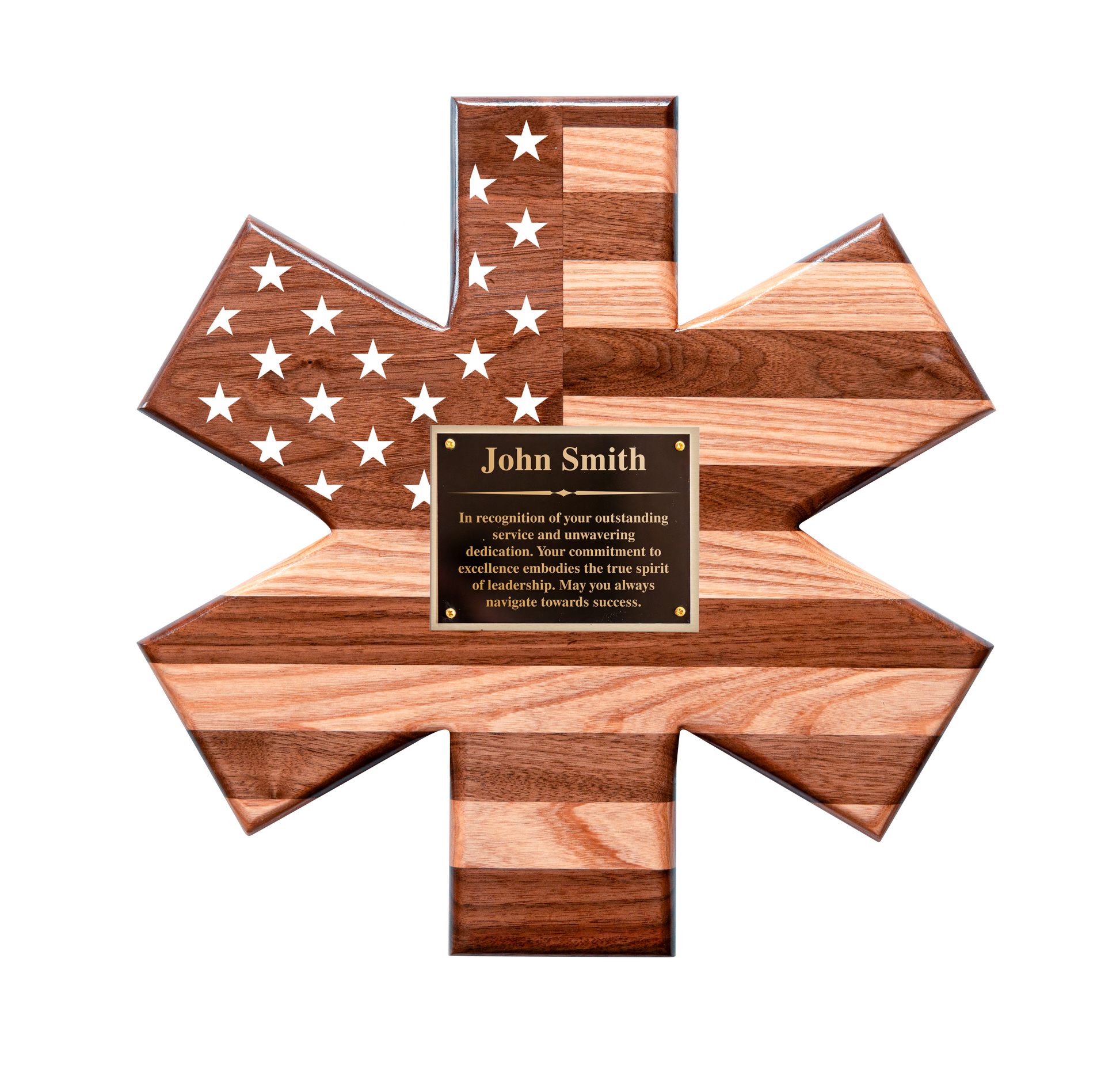 Shaped into the iconic Star of Life, this piece symbolizes emergency medical service, making it a perfect gift for EMTs, paramedics, and rescue teams. Personalize it with a blue stripe representing the Thin Blue Line for rescue professionals, a custom text plate, or a detailed logo engraving. Upload your department emblem or design to make this tribute truly unique.