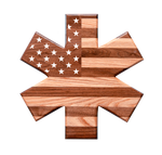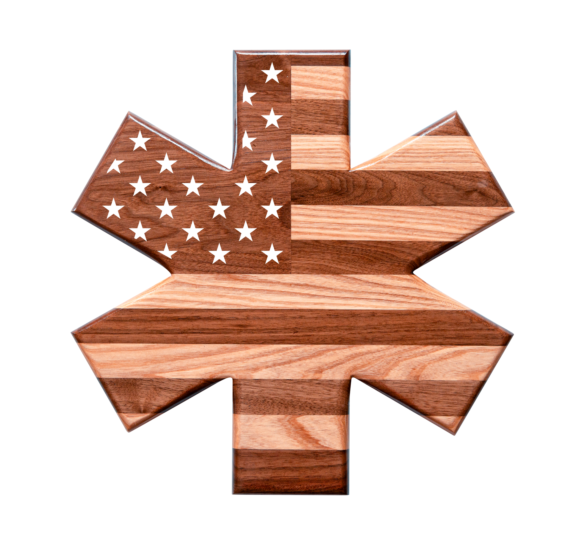 Star of Life Wooden Wall Art - American Flag Design - Personalized EMT & First Responder Gift