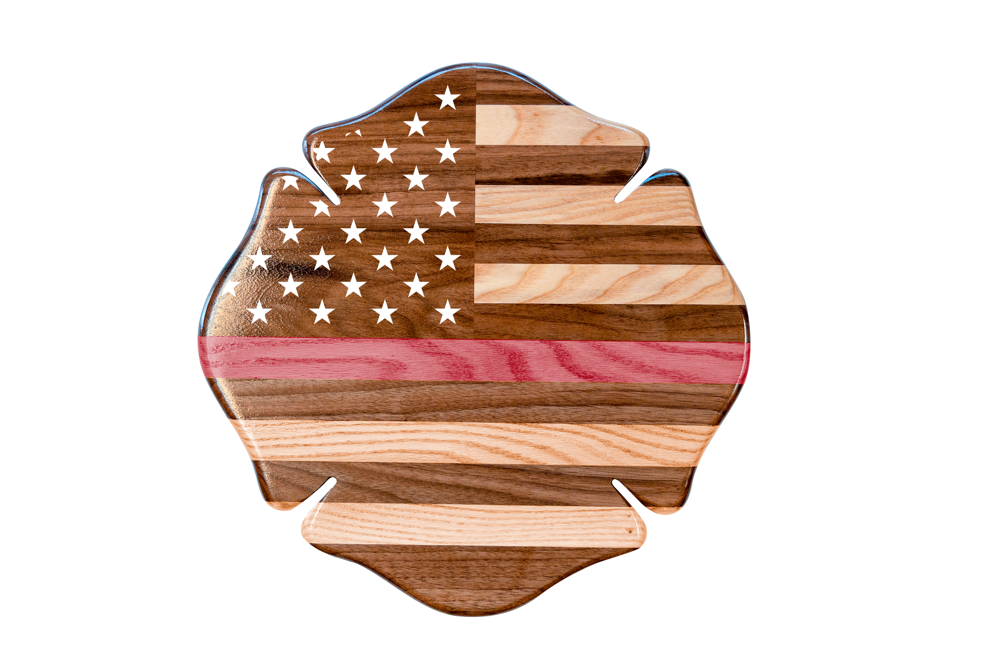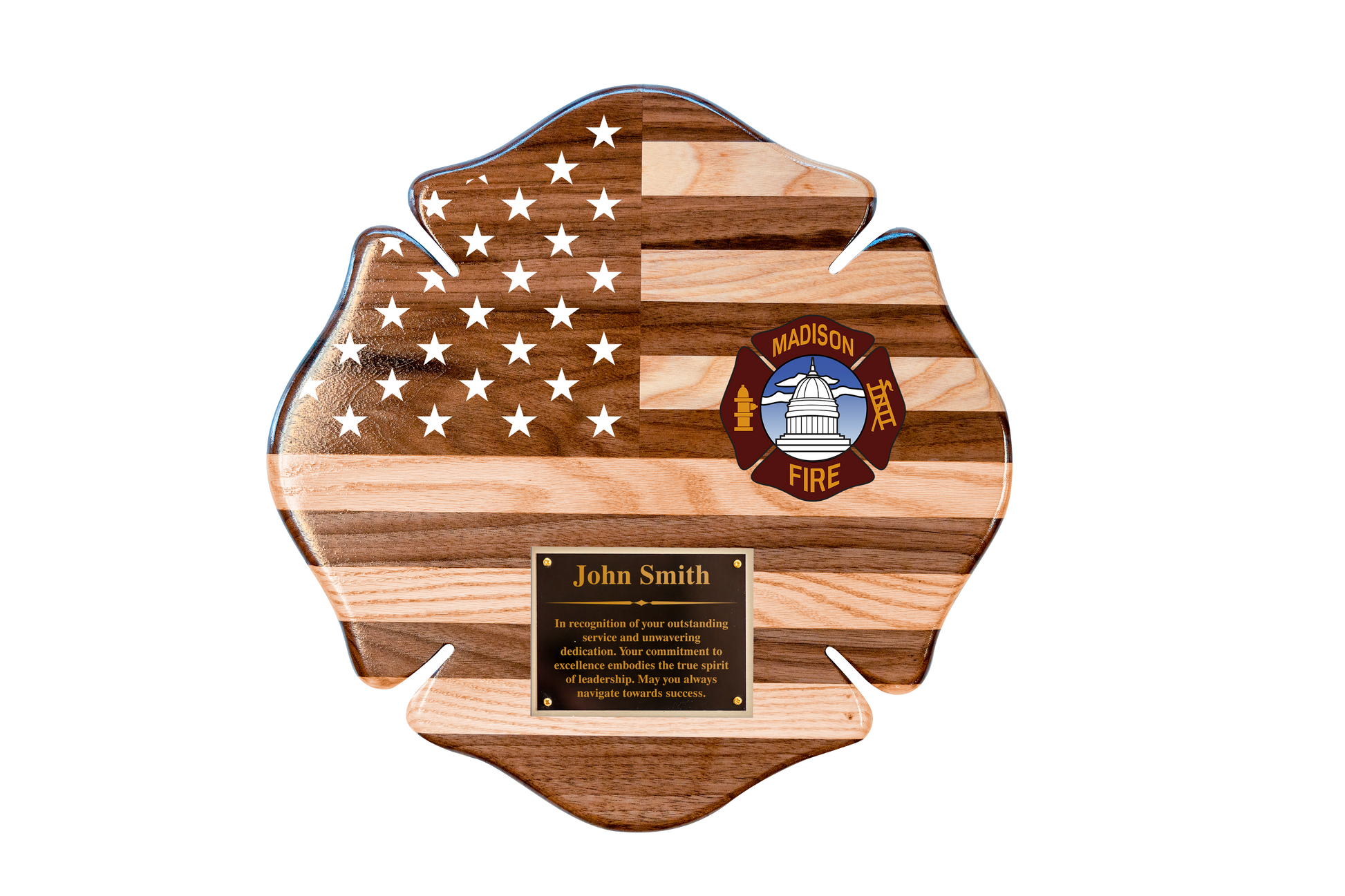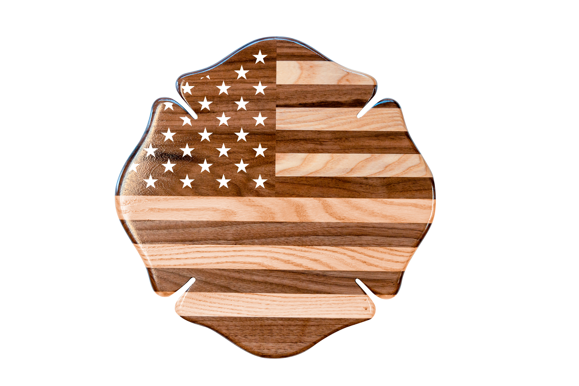 Maltese Cross Wooden Wall Art - American Flag Design - Personalized Firefighter & Rescue Gift