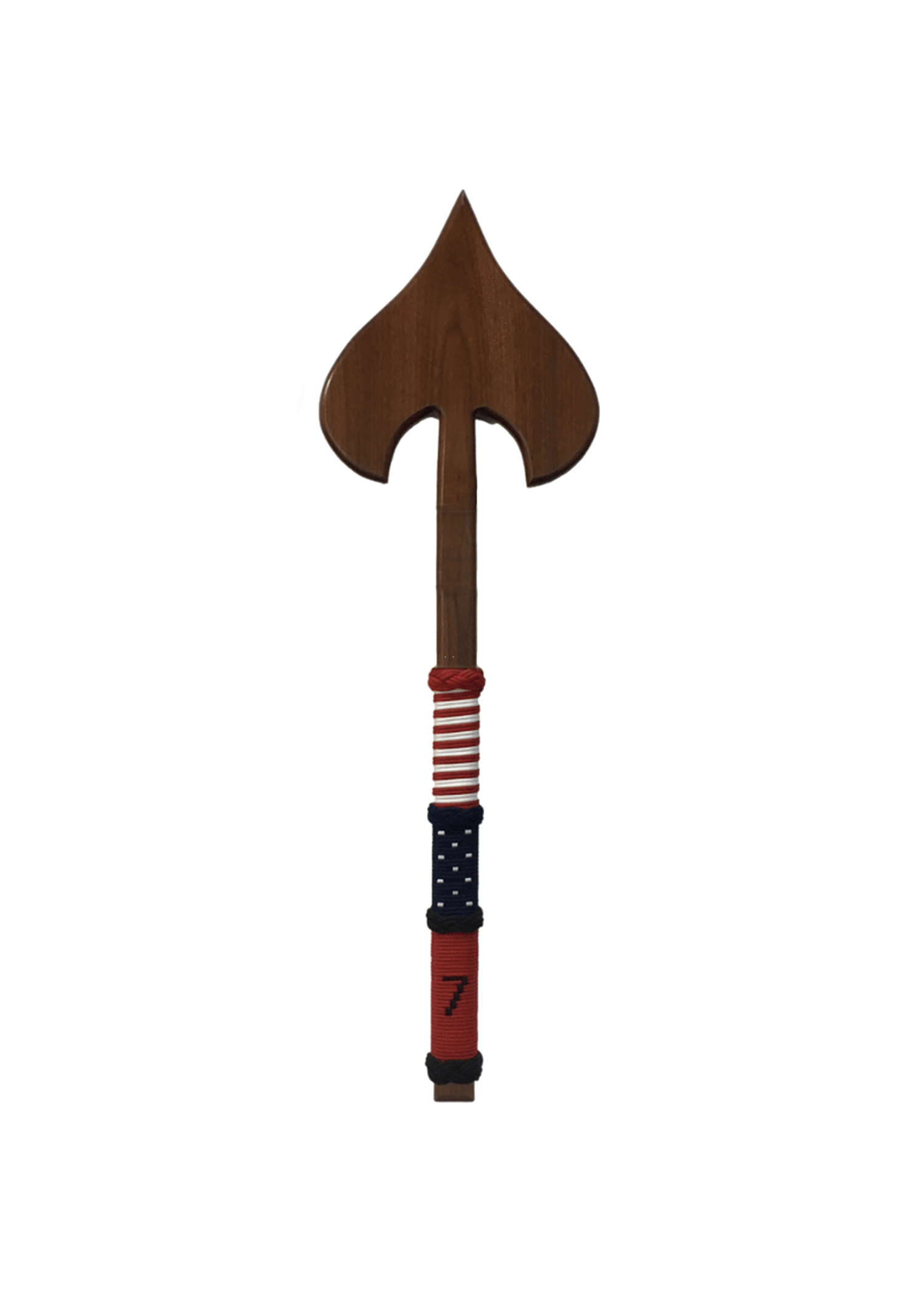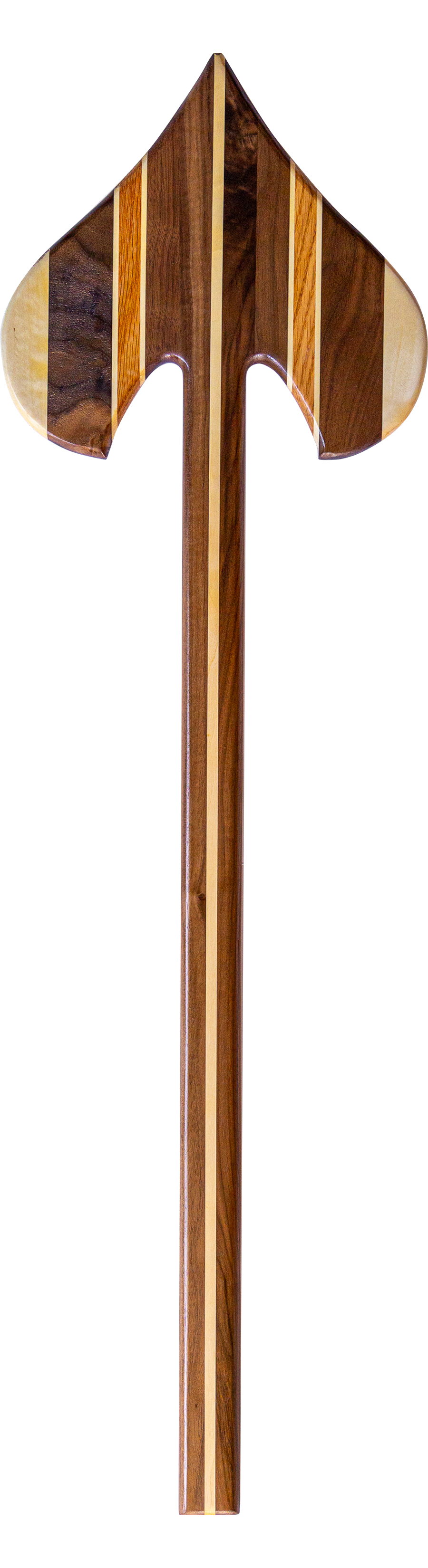 Experience the epitome of craftsmanship and honor with our Navy Paddles SOCOM Spear. This specialty striped paddle is meticulously handcrafted from a premium blend of walnut, cherry, and aspen woods, creating a stunning visual contrast that highlights the natural beauty and strength of each wood type.
